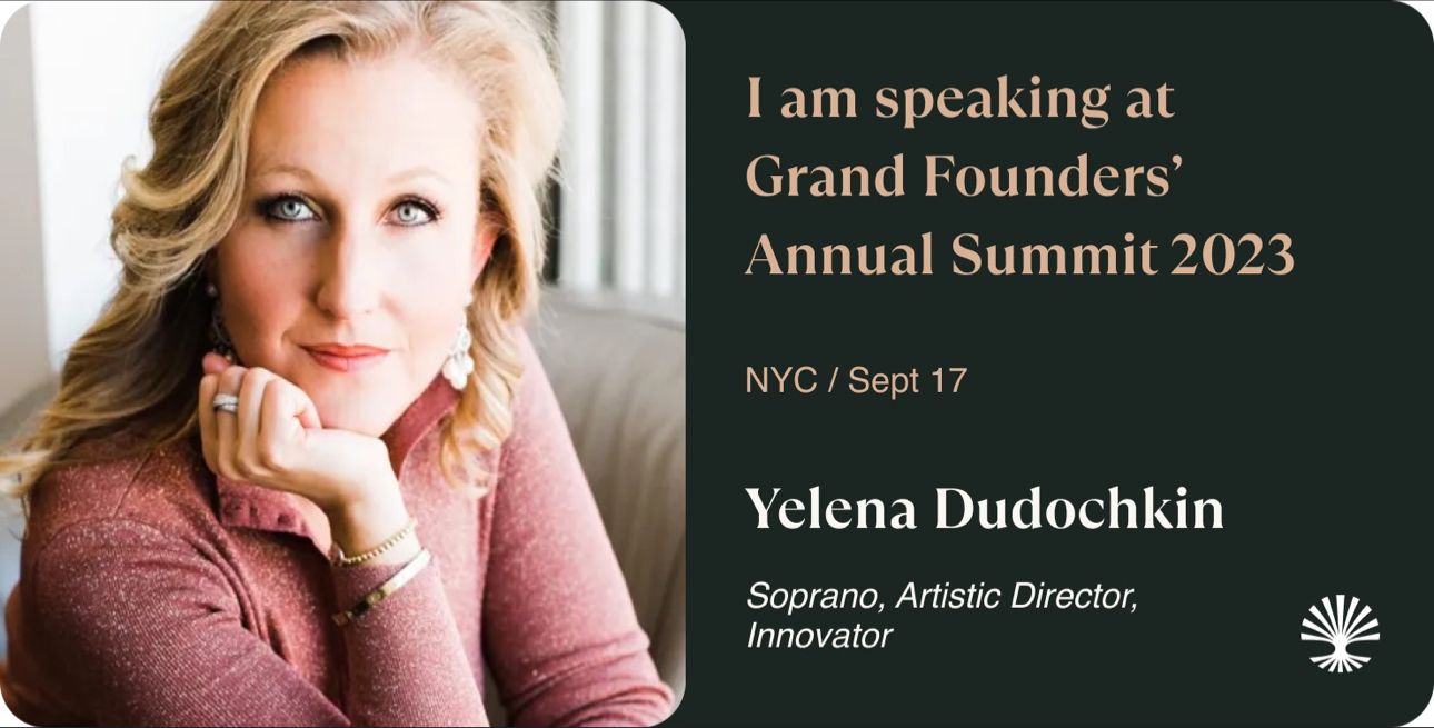 The day after the Grammy Awards, a day that will explore how music can inspire massive Transformative Purpose and Exponential Impact. Yelena will perform an aria and speak on this subject.